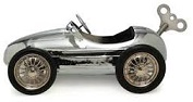 The car hit the leg of the table in front of him. It came to a halt, but the spring mechanism kept whirring. He sat watching the thing run down. The spring was making less noise and the key went around slower and slower.