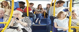 He was on the bus when he saw her.